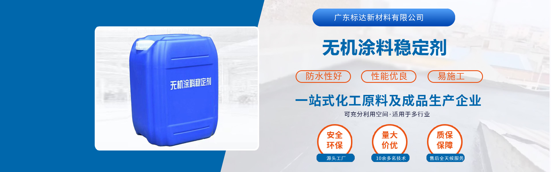 公司主營產(chǎn)品標(biāo)達(dá)彩砂固色劑、真石漆穩(wěn)定增強(qiáng)劑、無機(jī)涂料、隔熱保溫涂料、無機(jī)材料改性穩(wěn)定劑、瓷磚背膠和液體卷材等。我們擁有專業(yè)的化學(xué)化工方向的產(chǎn)品研發(fā)團(tuán)隊(duì),標(biāo)準(zhǔn)化管理的產(chǎn)品加工廠,以及完善的售后服務(wù)團(tuán)隊(duì)。
